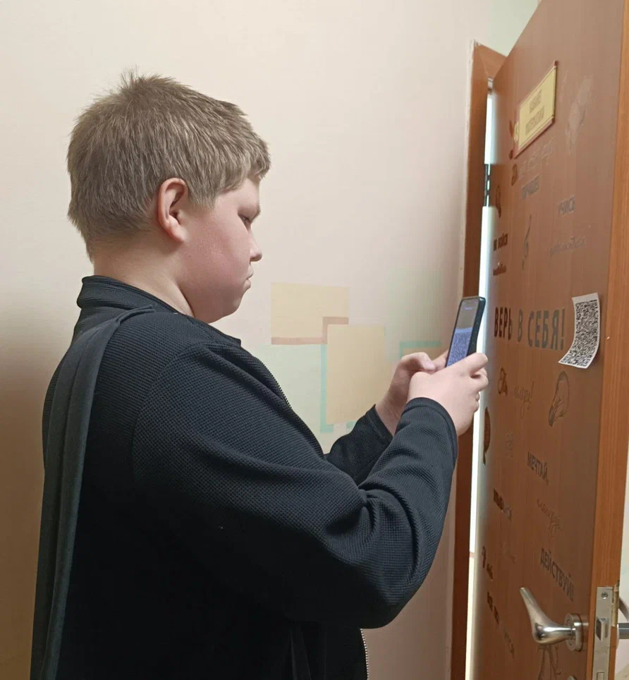 Им было предложено необычное творческое задание: отыскать спрятанные QR-коды на втором этаже школы, разгадать загадки и вопросы, зашифрованные внутри кодов.