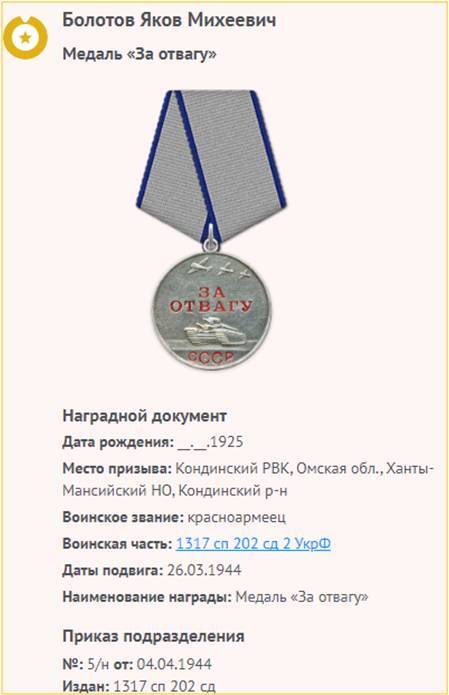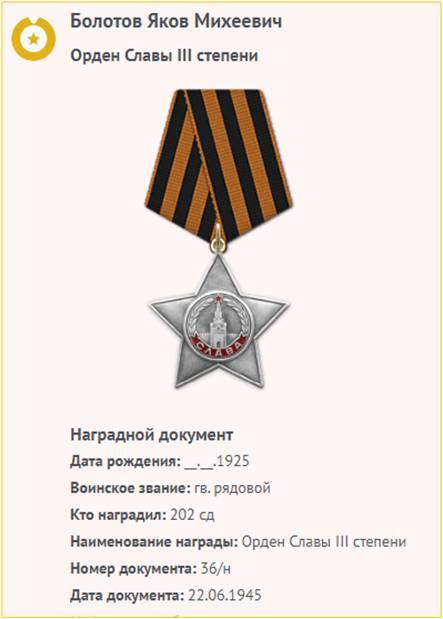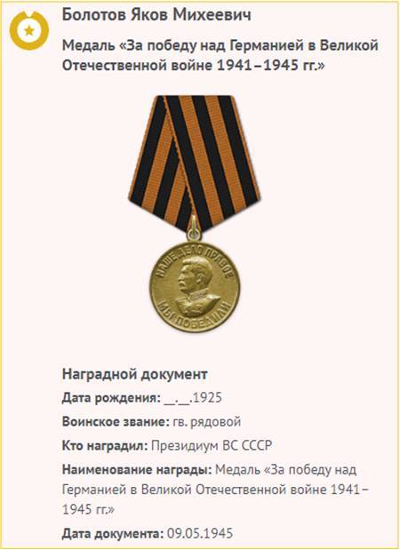 Яков Михеевич был награжден медалью «За отвагу» (№1141263), орденом Славы III степени (№422417).