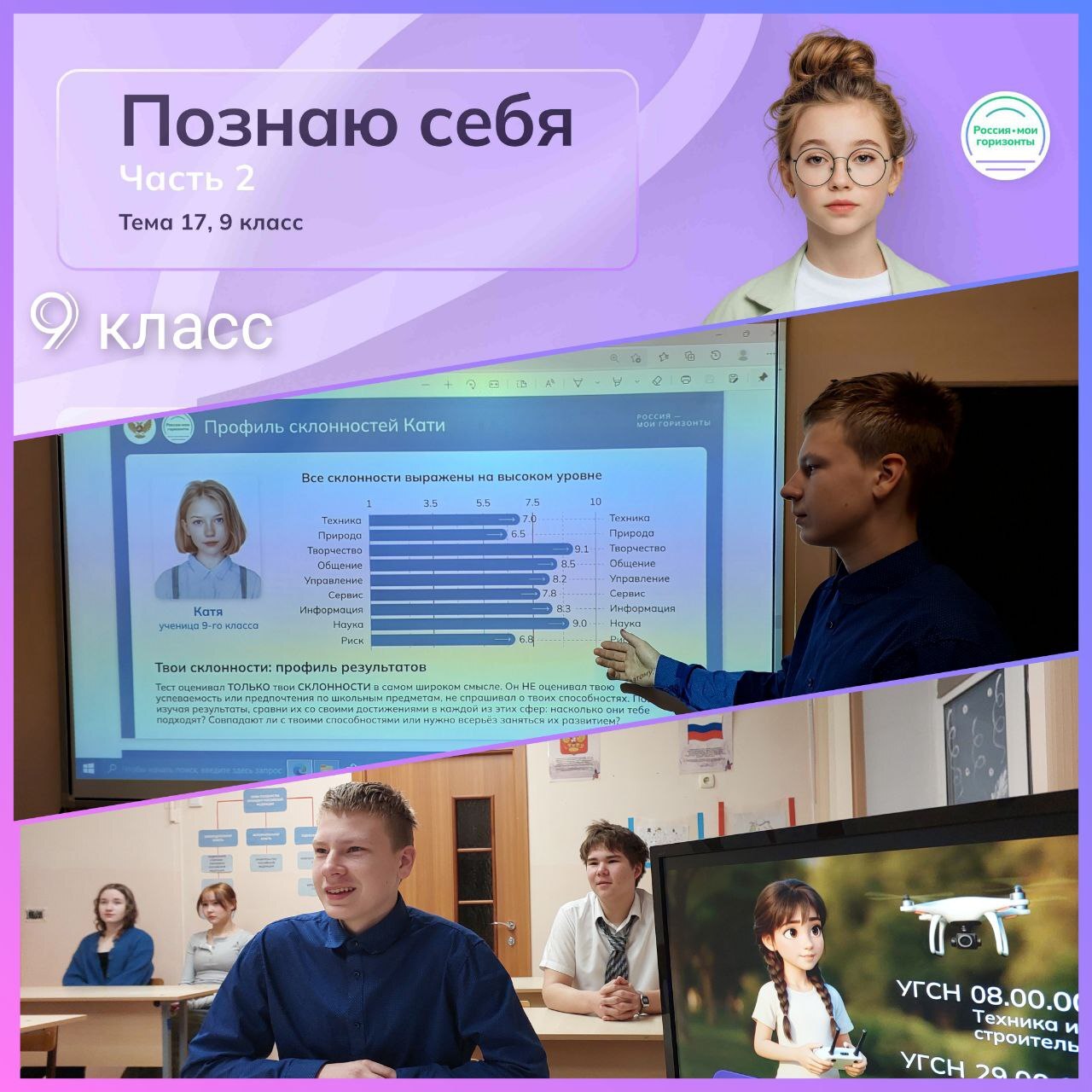 15 января на профориентационных занятиях «Россия – мои горизонты» обучающиеся 6-11 классов научились анализировать результаты компьютерной диагностики «Мои интересы», чтобы связать свои увлечения с выбором будущей профессии и профиля обучения.
