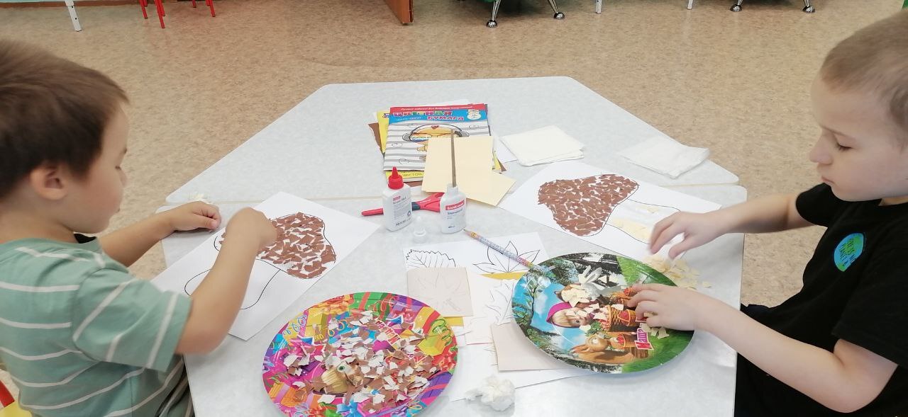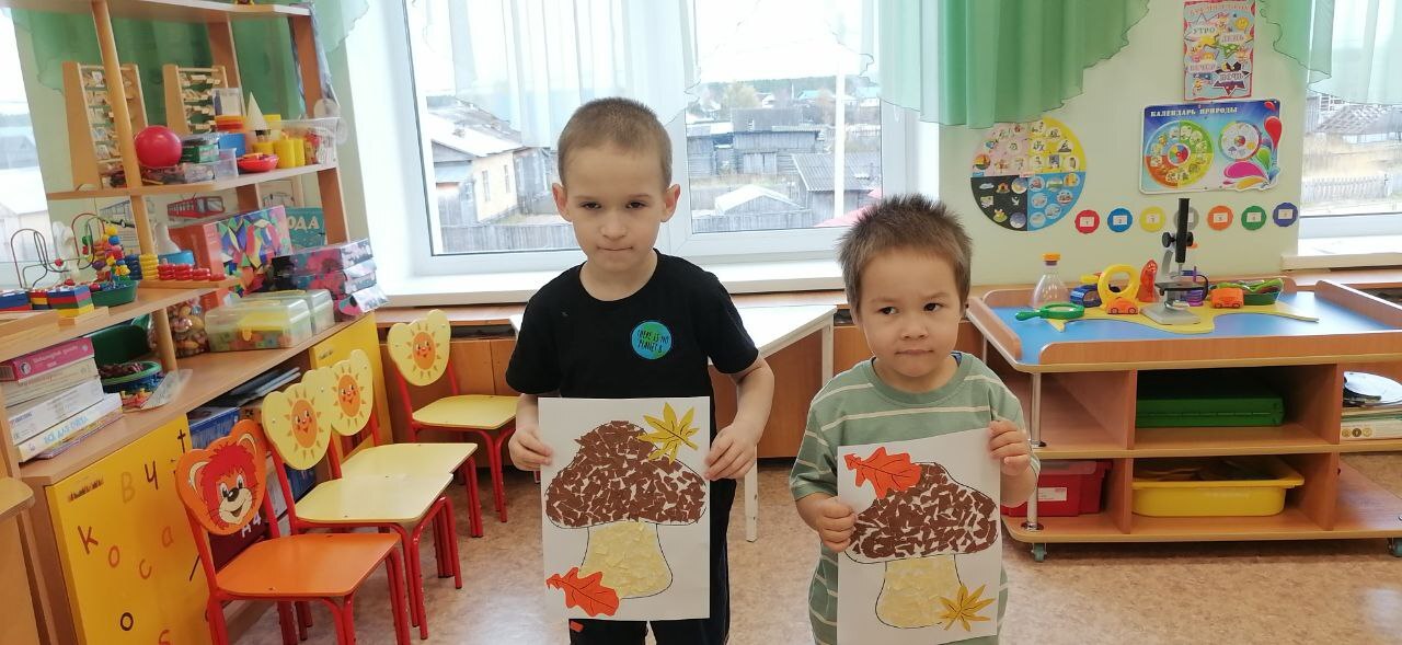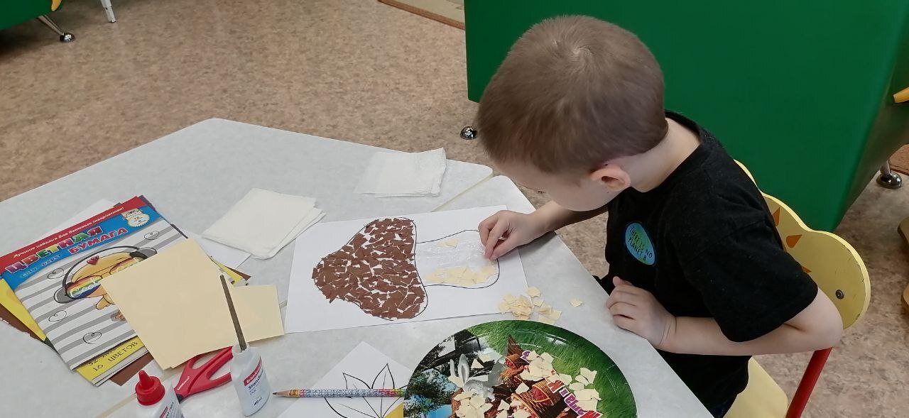 Сегодня у воспитанников разновозрастной группы дошкольного образования МКОУ Шугурской СОШ прошло занятие по аппликации "Грибок"